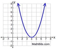 Function 3: quadratic, x-intercept at 4 (repeated root), equation y = x2 - 8 + 16 , y = 1002 - 8(100) + 16 = 9216
