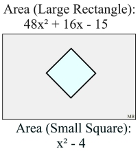 48x2 + 16x - 15. The area of a square, as shown, is expressed as x2 - 4.