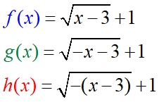 transformed functions over the x-axis: