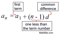Arithmetic Sequence: an = a1 + (n -1)d |