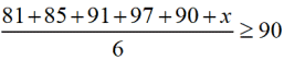 • In a word problem, such as this, it would be unnecessary to "solve" the inequality to isolate x on one side of the inequality symbol. Since only ONE situation is going to be examined, it will be faster to simply substitute the number 92 into the existing inequality to determine the result.