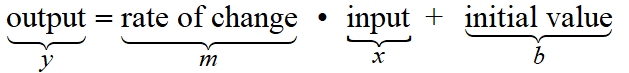 When modeling word problems, it is may be helpful to think about y = mx + b in "words":