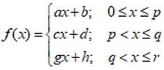 When setting up a linear piecewise-defined model, the main focus will be on the domain. Where will the "pieces" of the domain start and stop? Which equations correspond to which sections of the domain?