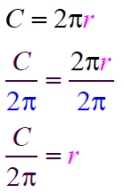 Remove the multiplied "2π", from in front of r, by dividing both sides by "2π".
