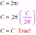 Substitute into the original equation, the "new" equivalent value you found for r. In this case, r = C/(2π).