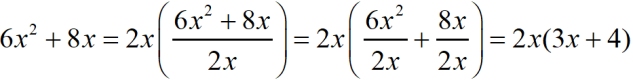 In this example, the GCF = 2x, so the entire expression is divided by 2x to find (3x + 4). |