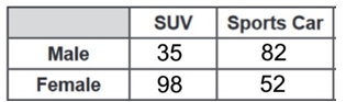 16. A survey was conducted to determine preferences between a sport utility vehicle (SUV) and a sports car.