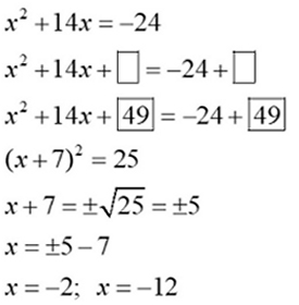 Take half of the x-term's coefficient and square it. Add this value to both sides (fill the boxes). Combine like terms.