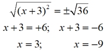 We saw this example under the "factoring method" in the section above. Here it is again, being solved by the "square root method". Of course, the answers are the same.